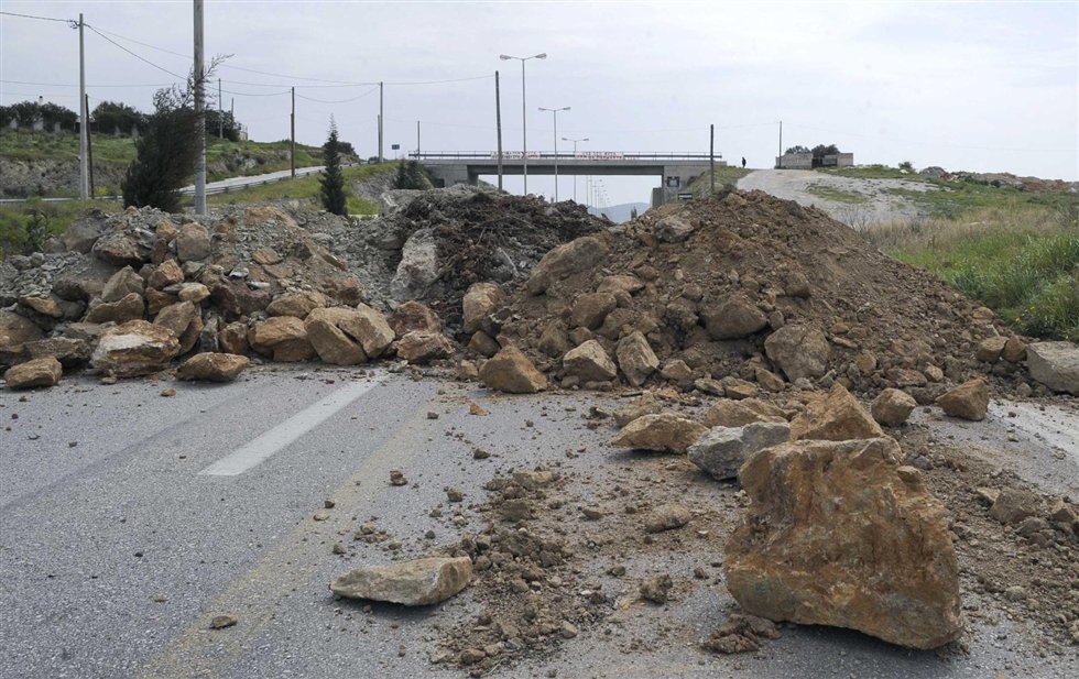 Με τη δημιουργία αναχώματος στη μέση του οδοστρώματος οι κάτοικοι προσπαθούν να ανακόψουν την πορεία των μηχανημάτων προς το εργοτάξιο του ΧΥΤΑ.