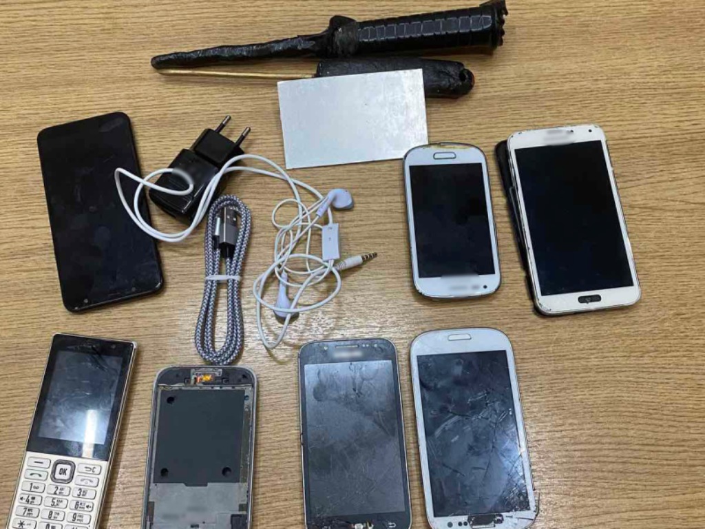 Ειδικότερα, βρέθηκαν και κατασχέθηκαν 3 αυτοσχέδια σουβλιά, 9 κινητά τηλέφωνα, 3 φορτιστές, 3 hands free, usb καλώδιο και bluetooth.