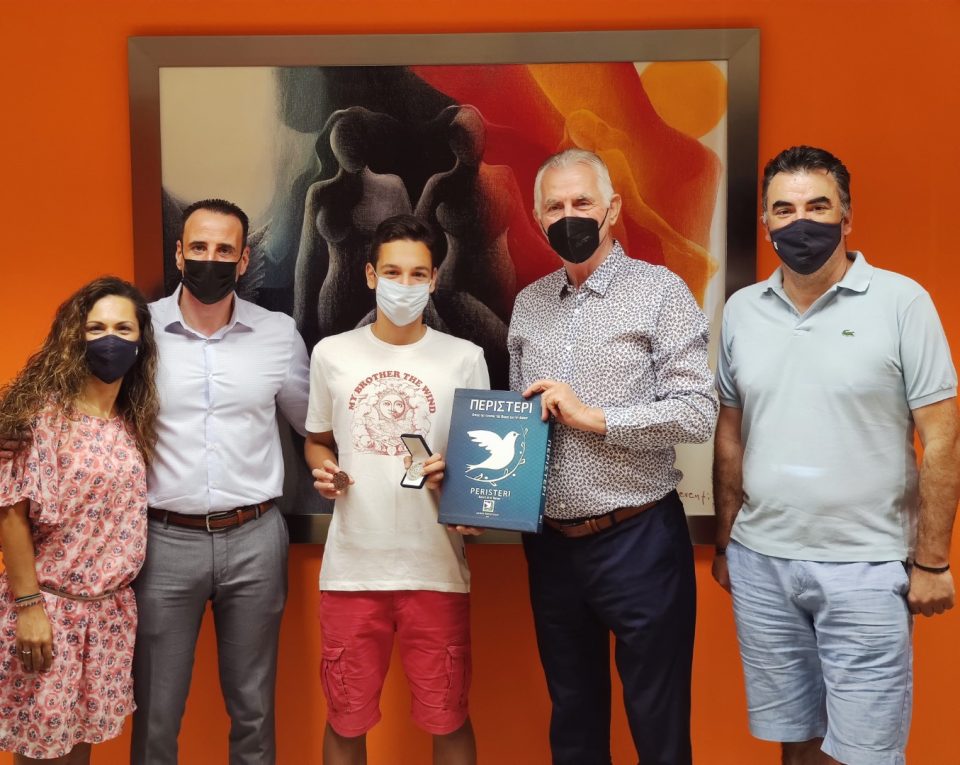 Ο Δήμαρχος Περιστερίου Ανδρέας Παχατουρίδης συνεχάρη τον Περιστεριώτη μαθητή της β’ Γυμνασίου Κυριάκο Τσουρέκα που κατέκτησε το αργυρό μετάλλιο στην 38η Εθνική Μαθηματική Ολυμπιάδα «ΑΡΧΙΜΗΔΗΣ».
