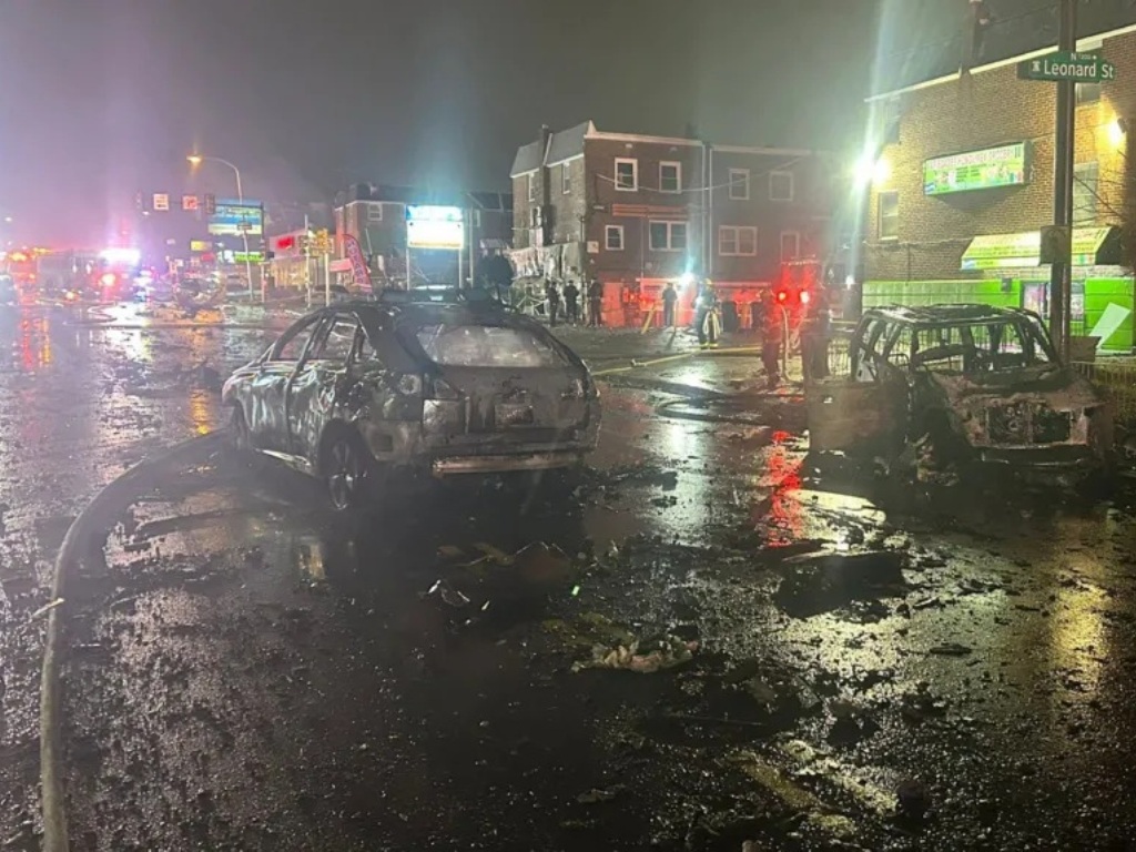 Βίντεο δείχνουν το δικινητήριο αεροσκάφος να κάνει μια απότομη βουτιά, προτού προσκρούσει στο έδαφος και σημειωθεί έκρηξη. Από τη συντριβή ξέσπασε φωτιά σε πολλά κτίρια και οχήματα γύρω από το Roosevelt Mall, ένα εμπορικό κέντρο στη βορειοανατολική Φιλαδέλφεια.