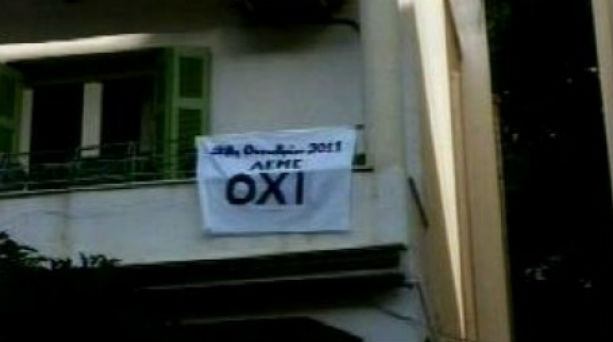 Πρόκειται για το κίνημα «όχι σε κάθε μπαλκόνι» που καλεί όλον τον κόσμο πέρα από την ανάρτηση της ελληνικής σημαίας στον ιστό, να κρεμάσει κάθε οικογένεια στο μπαλκόνι του σπιτιού της ένα πανό ή ένα σεντόνι όπου θα επαναλαμβάνει το «Οχι» του 1940, αλλά αυτήν την φορά όχι απέναντι στον Μουσολίνι και τον Χίτλερ αλλά ως μήνυμα ενάντια στην Μέρκελ, την Τρόικα και την κυβερνητική πολιτική…