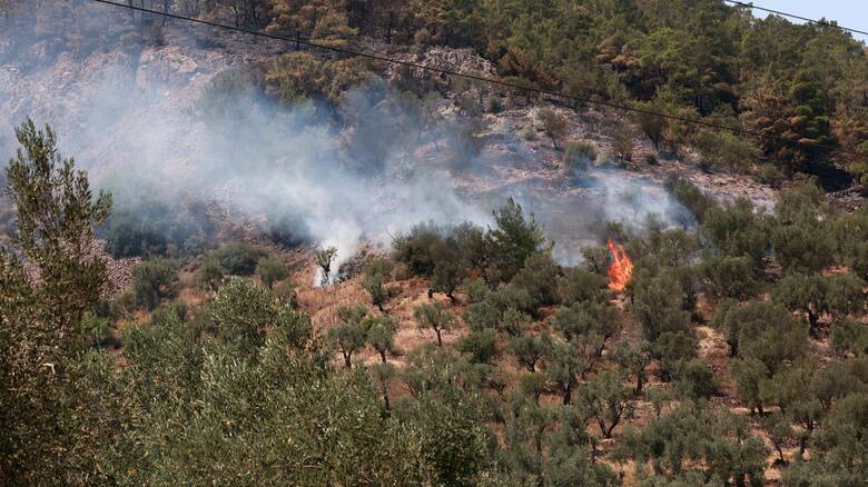 Χαμηλή βλάστηση στην Αρκαδία καίγεται το μεσημέρι της Πέμπτης, στη Νεστάνη.