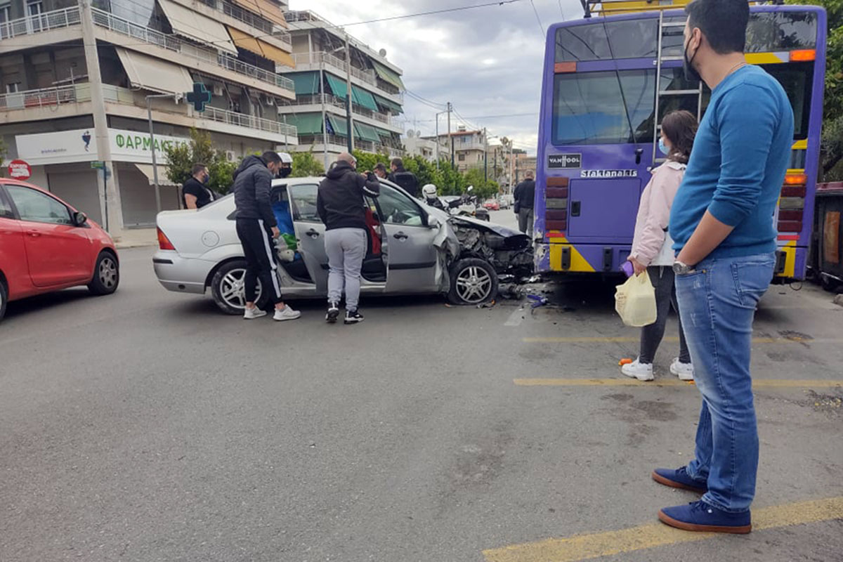Αυτή τη φορά πρωταγωνιστές στο τροχαίο ατύχημα ένα ΙΧ και ένα τρόλεϊ στην οδό Κύπρου στον Άγιο Αντώνιο.