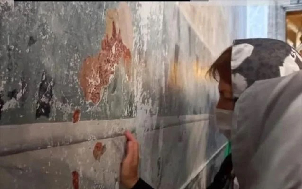 Φωτογραφίες που δείχνουν γυναίκες να ξύνουν τοίχους της Αγίας Σοφίας και να παίρνουν κομμάτια στις τσάντες τους ως ενθύμιο ή φυλαχτό, κυκλοφορούν στα μέσα κοινωνικής δικτύωσης. Μετά τον σάλο τα τουρκικά Μέσα Ενημέρωσης άρχισαν να φιλοξενούν ρεπορτάζ με προκλητικούς τίτλους, αναφέροντας ότι τις καταστροφές προκαλούν Χριστιανοί.