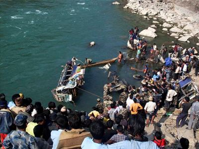 Σε ποτάμι έπεσε ένα λεωφορείο, με υπεράριθμους επιβάτες, παρασέρνοντας στο θάνατο τουλάχιστον 35 άτομα.