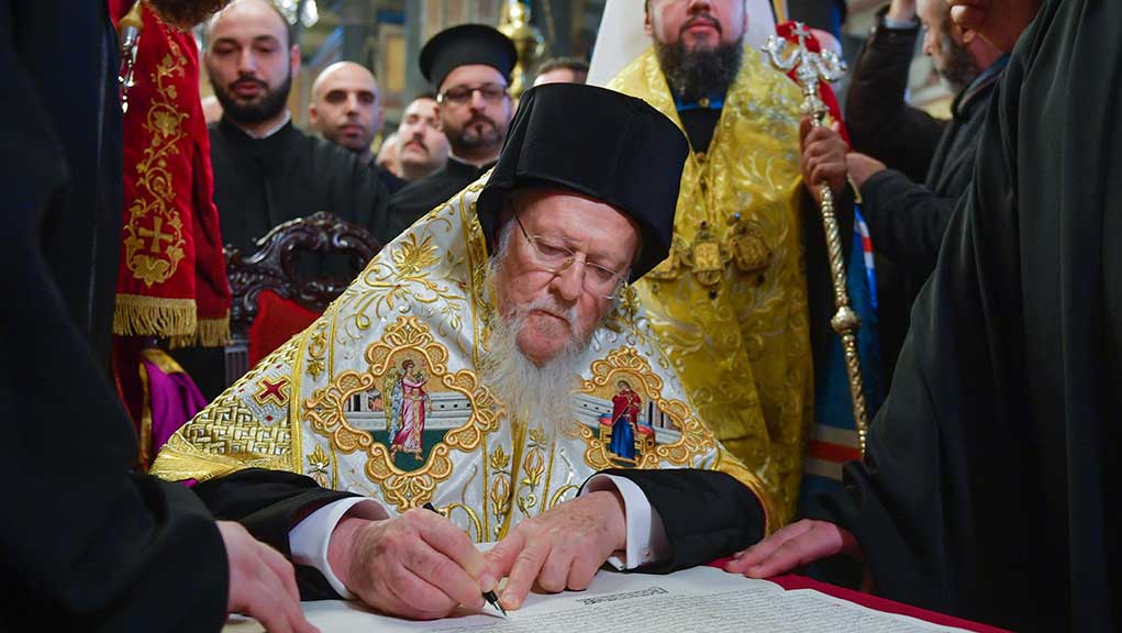 Και συνέχισε: “Είμαστε εδώ λοιπόν εκπροσωπώντας την ελληνική πολιτεία, τον ελληνικό λαό στην Κωνσταντινούπολη, στην έδρα του Οικουμενικού Πατριαρχείου, ενός θεσμού τον οποίον τον τιμά ο Ορθόδοξος κόσμος, και έχει ιδιαίτερο σεβασμό για τον Σεπτό Προκαθήμενο του. Σήμερα ήτανε βέβαια εδώ και ο Πρόεδρος της Ουκρανίας και ο καινούργιος Μητροπολίτης Κιέβου. Έχω να πω πως η εκκλησία είναι ένας θεανθρώπινος θεσμός, ο οποίος έχει τους δικούς του κανόνες λειτουργίας. Αυτούς τους κανόνες οι πιστοί, οι ορθόδοξοι χριστιανοί τους σέβονται και τους τηρούν. Σε αυτά τα ζητήματα που αφορούν την λειτουργία της Ορθόδοξης Εκκλησίας, κάθε Εκκλησίας, η ελληνική πολιτεία δεν έχει κανένα λόγο να παρέμβει. Είμαστε λοιπόν εδώ στα Θεοφάνεια, παραστήκαμε στην επίδοση του τόμου η οποία είναι μία εκκλησιαστική πράξη του Οικουμενικού Πατριαρχείου προς την Μητρόπολη του Κιέβου”