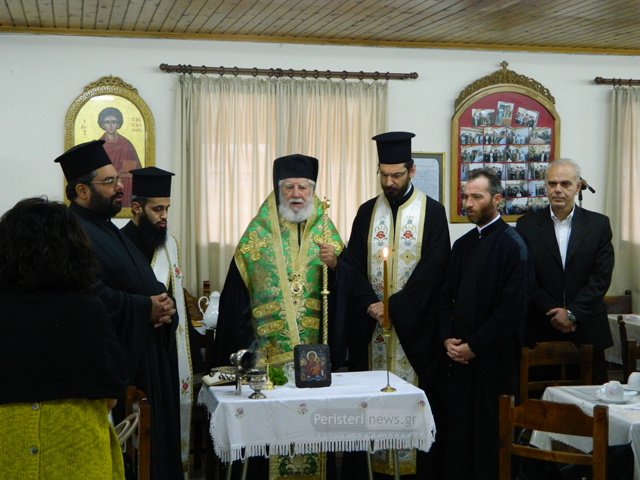 Τελέσθηκε από τον Σεβασμιότατο Μητροπολίτη Περιστερίου κ.κ. Χρυσόστομο, με την παρουσία του εμπνευστή της προσπάθειας Γιώργου Βαθιώτη και των εθελοντών καθηγητών.