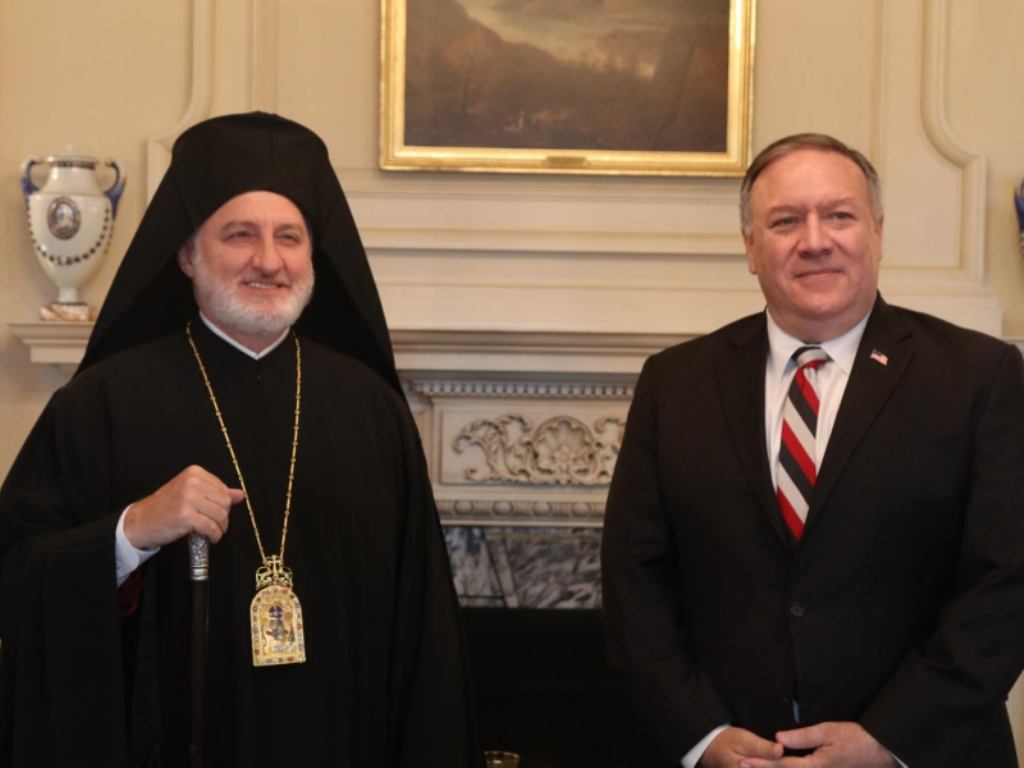 Την ανησυχία της Ελληνοαμερικανικής κοινότητας για την επιθετική και στρατιωτική συμπεριφορά της Τουρκίας, εξέφρασε ο Αρχιεπίσκοπος Ελπιδοφόρος στον υπουργό Εξωτερικών των ΗΠΑ Μάικ Πομπέο κατά τη διάρκεια συνάντησης στο Στέιτ Ντιπάρτμεντ. Ο Αρχιεπίσκοπος υπογράμμισε ότι οι ενέργειες της Άγκυρας θέτουν σε κίνδυνο την ειρήνη και τη σταθερότητα στη περιοχή.