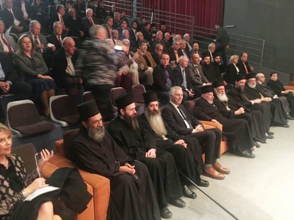 Παρέστησαν ακόμη στην εκδήλωση, οι Μητροπολίτες Περιστερίου κ. Χρυσόστομος, Νέας Ιωνίας και Φιλαδελφείας κ. Γαβριήλ, Ηλιουπόλεως κ. Θεόδωρος από το Πατριαρχείο Αλεξανδρείας, ο Πρωτοσύγκελλος της Αρχιεπισκοπής Αρχιμανδρίτης Συμεών Βολιώτης, βουλευτές, κληρικοί και πλήθος κόσμου.