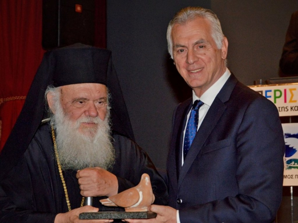 Κατόπιν ο Δήμαρχος Περιστερίου, Ανδρέας Παχατουριδης, αναφέρθηκε στο «τεράστιο φιλανθρωπικό και κοινωνικό έργο της Εκκλησίας της Ελλάδος και του Αρχιεπισκόπου» και δήλωσε αρωγός στο έργο προσφοράς προς τον συνάνθρωπο, ενώ δώρισε στον Αρχιεπίσκοπο ένα πορσελάνινο ομοίωμα περιστεριού, το έμβλημα του Δήμου, που είναι, όπως είπε, μήνυμα ελπίδας, αισιοδοξίας και ειρήνης.