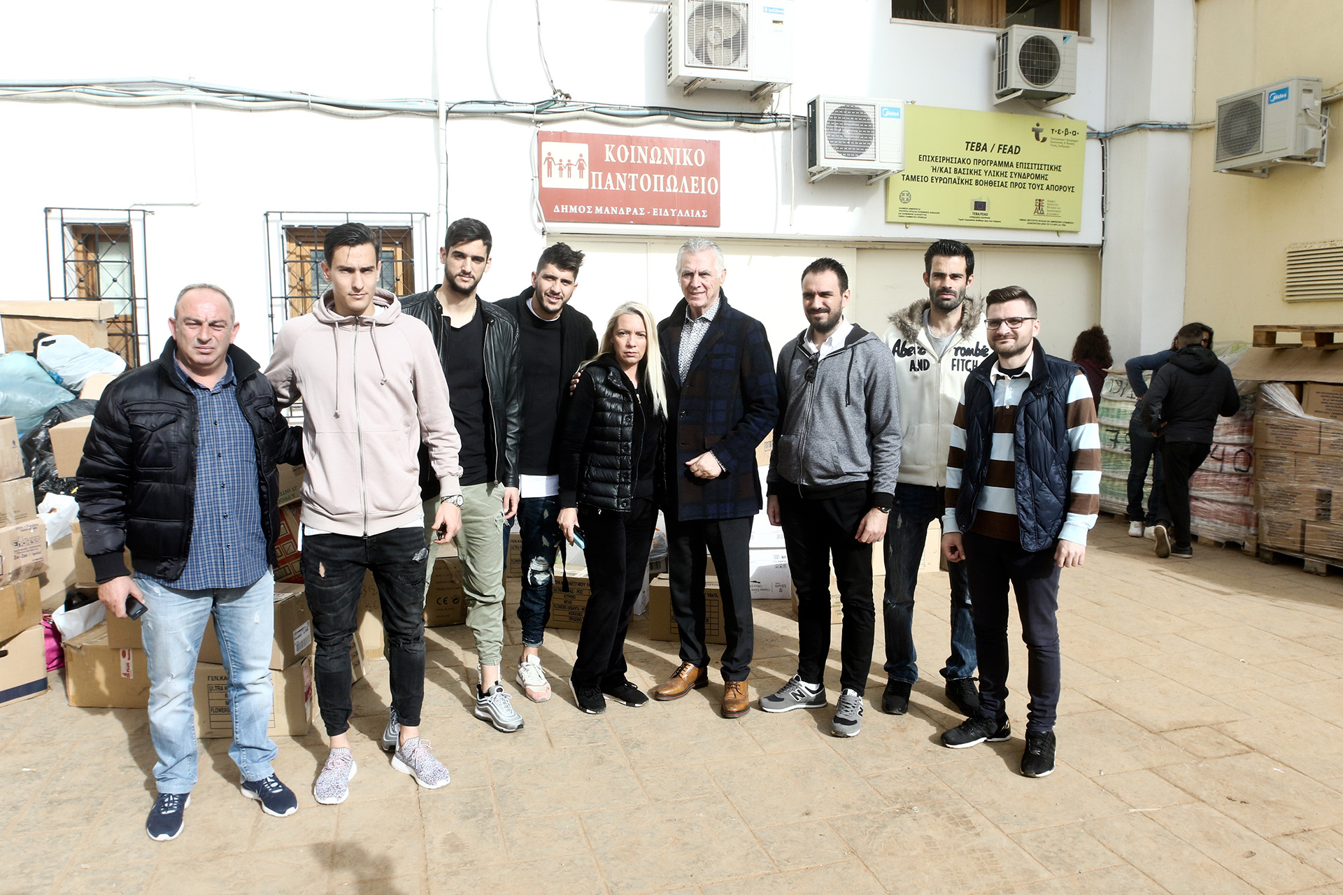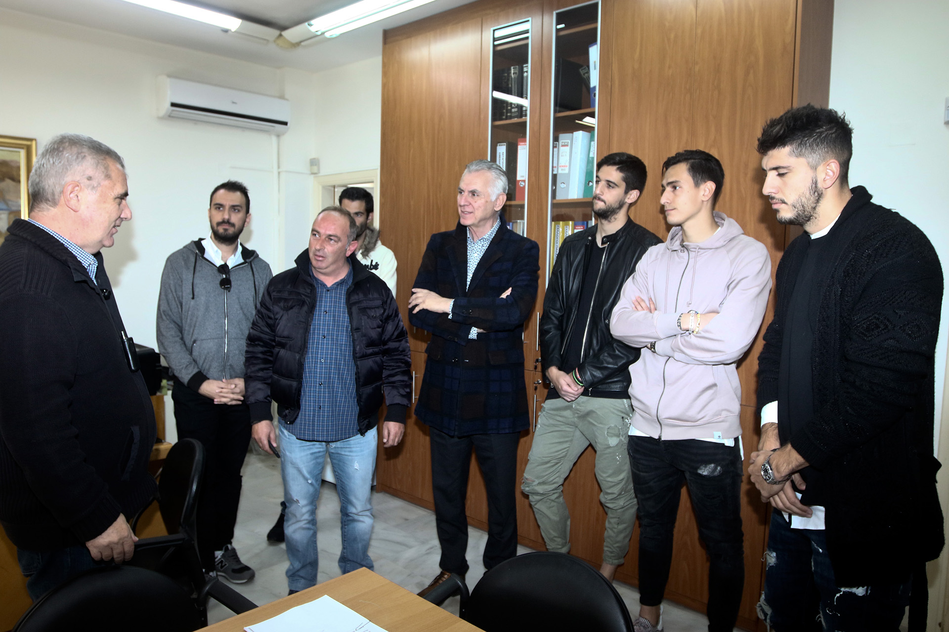 Ο πρόεδρος της ομάδας Βασίλης Μπέτσης, οι ποδοσφαιριστές Σπύρος Ρισβάνης, Δημήτρης Χατζηισαίας και Ανδρέας Γιαννιώτης και ο γυμναστής Σωτήρης Ρούσσης συναντήθηκαν το πρωί της Πέμπτης με εκπροσώπους του Δήμου Μάνδρας δηλώνοντας τη συμπαράστασή τους.