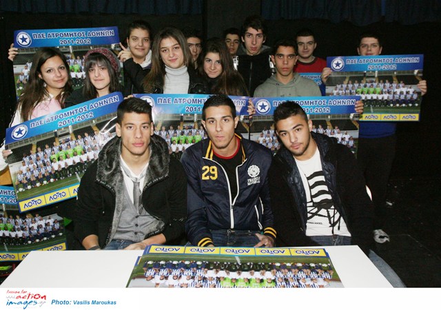 Οι ποδοσφαιριστές Θανάσης Καραγκούνης, Παναγιώτης Μπάλλας και Τάσος Καραμάνος μοίρασαν λοιπόν εισιτήρια στους μαθητές και τις μαθήτριες για τους δύο σερί αγώνες με τον Άρη στο γήπεδο Περιστέριου, αύριο στο πλαίσιο του κυπέλλου Ελλάδας και την Κυριακή στο πλαίσιο της 17ης αγωνιστικής του πρωταθλήματος.