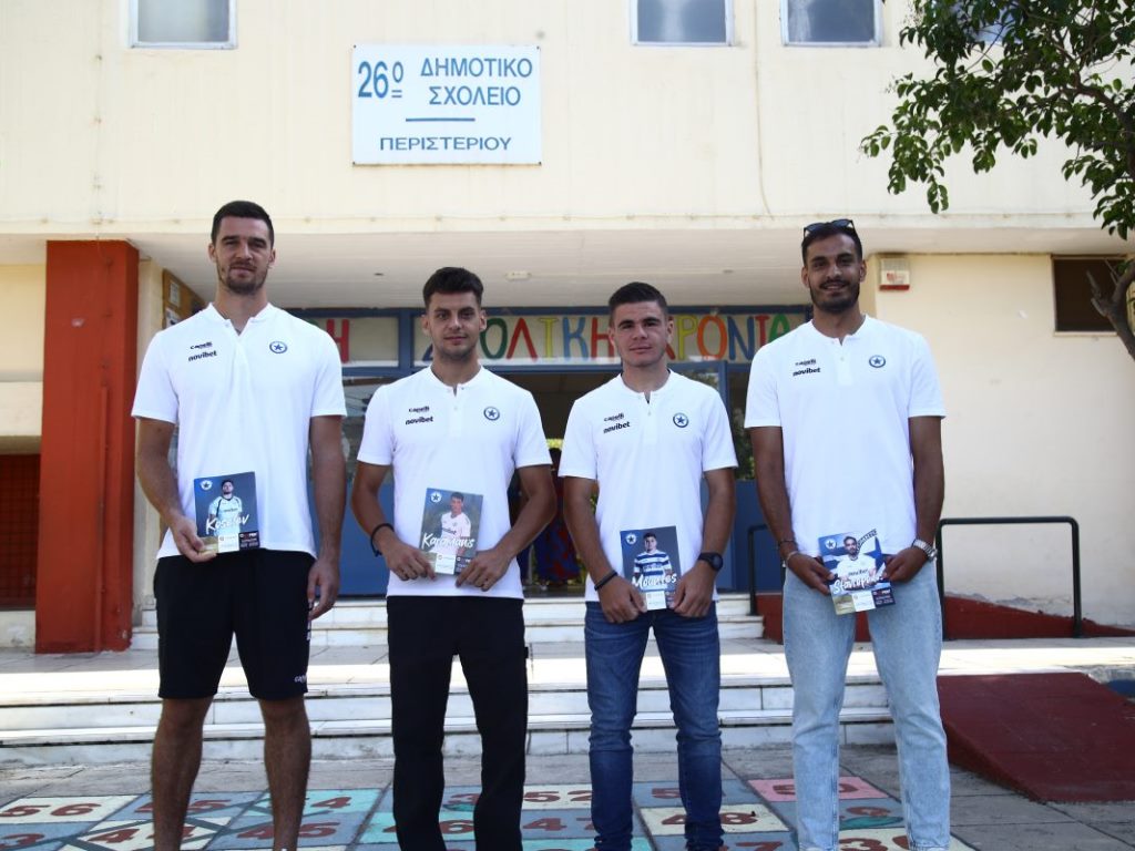 Ο Ατρόμητος με αντιπροσωπεία αποτελούμενη από τους Αλεξέι Κοσέλεφ, Δημήτρη Σταυρόπουλο, Θανάση Καραμάνη και Ματθαίο Μουντέ παρευρέθηκε σήμερα στον Αγιασμό του 26ου Δημοτικού Σχολείου και του 1ου Ειδικού Περιστερίου