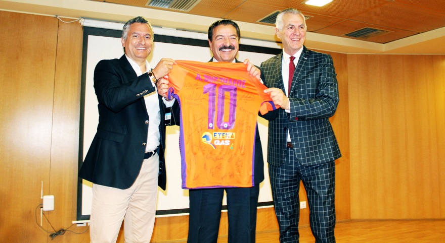 Ο κ. Σπανός πρόσφερε μαζί με τον Δήμαρχο Περιστερίου Ανδρέα Παχατουρίδη, στον κορυφαίο καθηγητή μια υπογεγραμμένη φανέλα της ομάδας με το όνομα του κ. Βιντζηλαίου τυπωμένο στην πλάτη μαζί με το νούμερο 10.