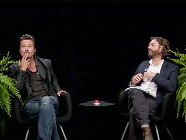 Ο Γαλιφιανάκης υποδέχτηκε τον Πιτ στο πλατό του «Between Two Ferns» -της εκπομπής του πρώτου-, και αυτό που ακολούθησε είναι επικό. Σε κάποια στιγμής της συνέντευξης, ο δικός μας Ζακ, ρωτάει: «Πες μου, όταν πρωτογνώρισες την Αντζελίνα, ήταν μια κλασική ιστορία αγάπης όπως όταν ο Ρος είδε τη Ρέιτσελ; Ξέρεις, από τη σειρά ‘Φιλαράκια’, την έχεις δει;». Ακολούθως Ο Γαλιφιανάκης του έκανε μια ερώτηση αναφορικά με την εμφάνισή του και την υποκριτική του…