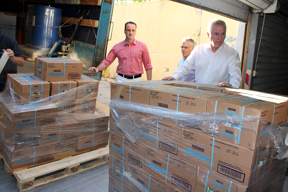 Το απόγευμα της Παρασκευής περισσότερες από πενήντα κούτες βρεφικού γάλακτος φορτώθηκαν και μεταφέρθηκαν με φορτηγό από τις αποθήκες του Δήμου Περιστερίου, στα γραφεία του συλλόγου Τριτέκνων.