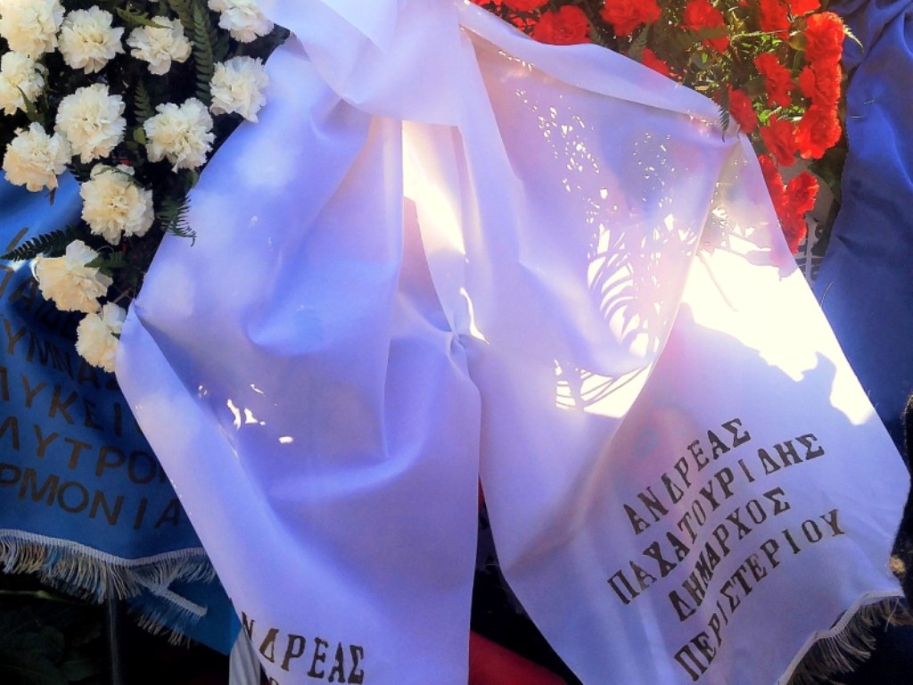 Ο Δήμος Περιστερίου τίμησε και φέτος την 43η επέτειο της εξέγερσης του Πολυτεχνείου. Εκπροσωπώντας τον Δήμαρχο Περιστερίου Ανδρέα Παχατουρίδη, οι Αντιδήμαρχοι Βασίλης Μπέτσης και Κώστας Ποθητός κατέθεσαν ανήμερα της επετείου, στεφάνι στο μνημείο για να αποτίσουν φόρο τιμής, στους αγωνιστές του Πολυτεχνείου.