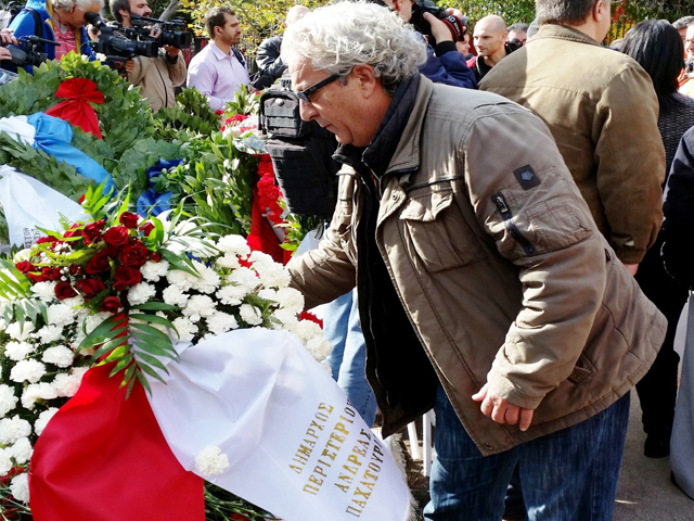 Εκπροσωπώντας τον Δήμαρχο Περιστερίου Ανδρέα Παχατουρίδη, ο Πρόεδρος της ΔΕΠΑΔΠ Βασίλης Παπαδόπουλος κατέθεσε ανήμερα της επετείου στεφάνι στο μνημείο.