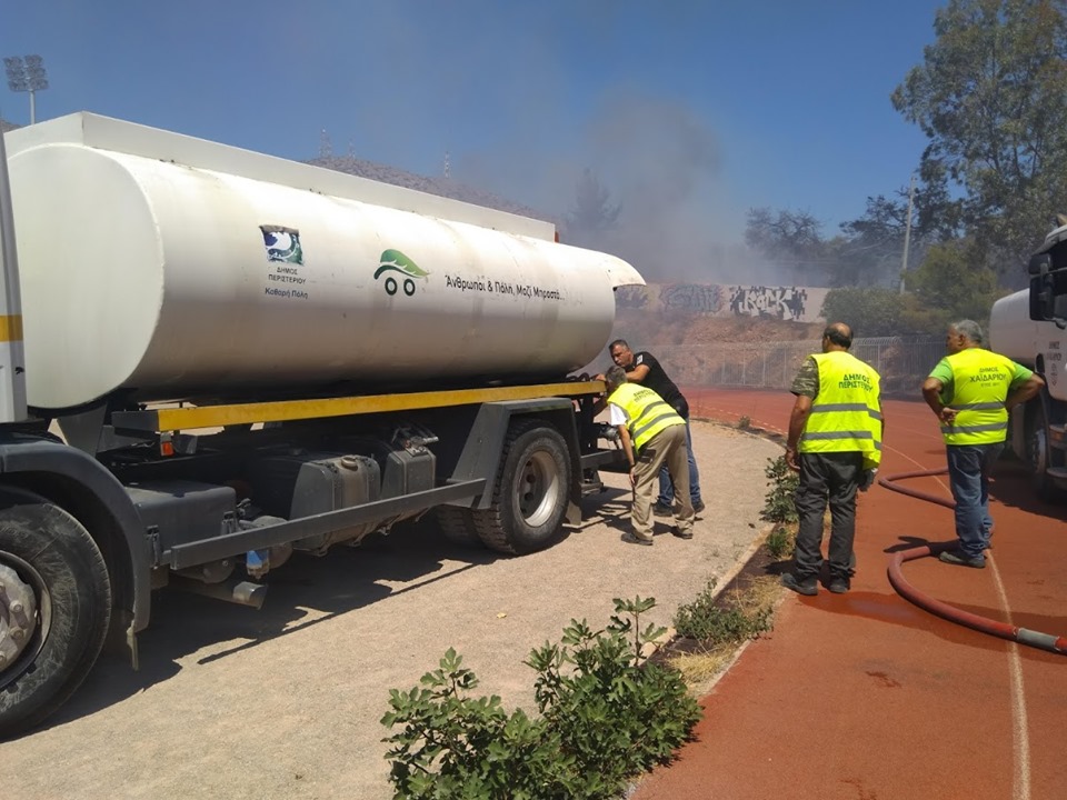 Με άμεσες ενέργειες ο Δήμος Περιστερίου στήριξε την προσπάθεια της κατάσβεσης της φωτιάς στο Δάσος Χαϊδαρίου.