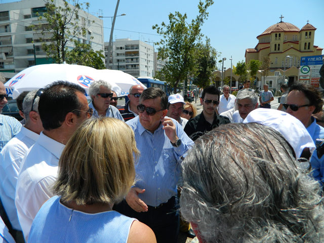Εκεί τον υποδέχτηκαν θερμά οι υποστηρικτές του ΛΑΟΣ στο Περιστέρι.