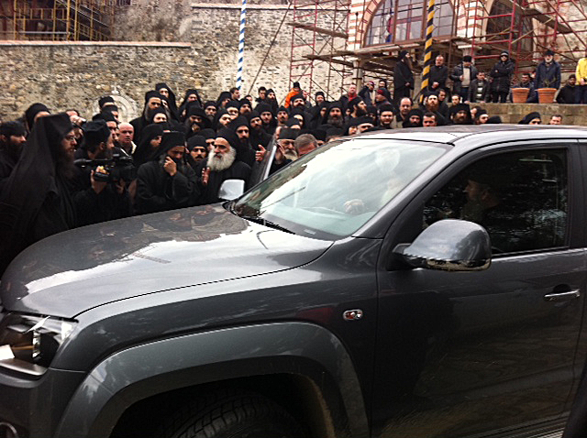 Έφτασε πριν από λίγη ώρα οδικώς από το Άγιο Όρος συνοδεία αστυνομικών.