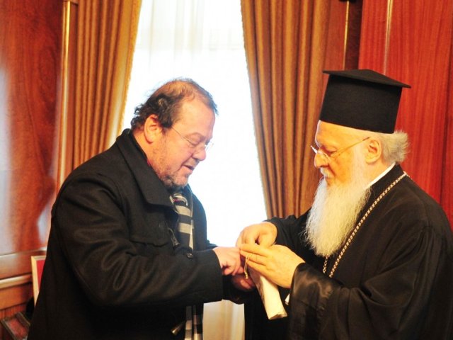 «Από μωρό είμαι παιδί της Εκκλησίας” είπε προς τον Οικουμενικό Πατριάρχη Βαρθολομαίο ο Γιάννης Πάριος. “Το έχω ακούσει και σας συγχαίρω” απάντησε ο Πατριάρχης Βαρθολομαίος.