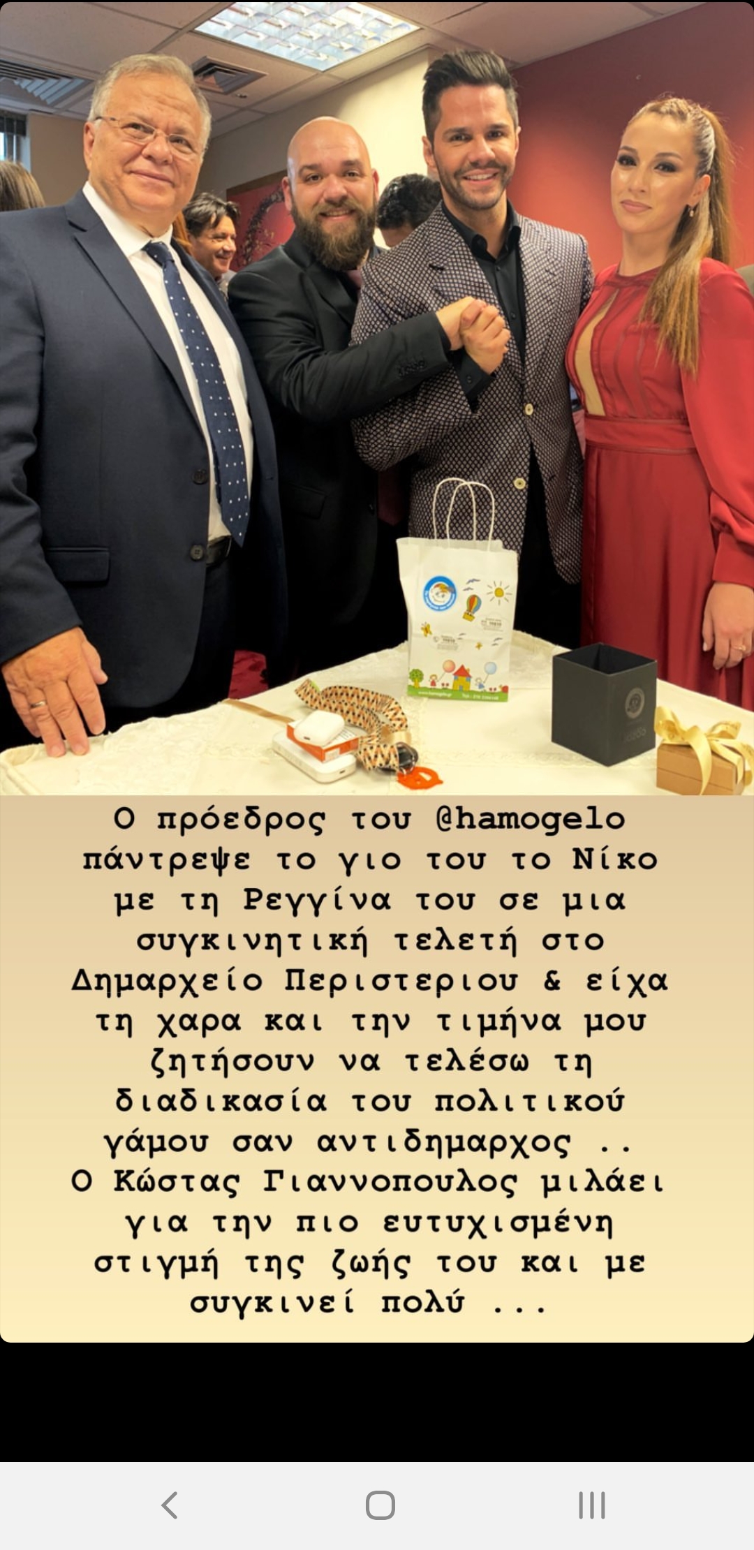 Ο Τσαλίκης δημοσίευσε φωτογραφίες και βίντεο σε μέσο κοινωνικής δικτύωσης αποκαλύπτοντας τον γάμο του γιού του προέδρου από το «Χαμόγελο του Παιδιού», Νίκο με τη Ρεγγίνα.