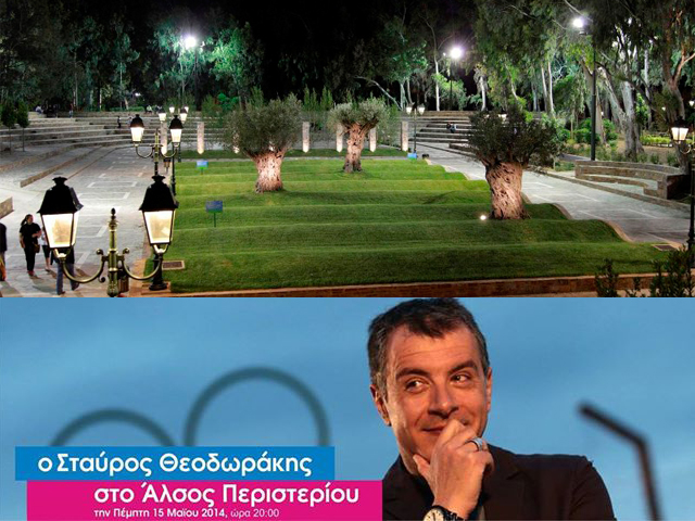 Στο Άλσος Περιστερίου θα βρεθεί την Πέμπτη 15 Μαϊου στις 20:00 ο Σταύρος Θεοδωράκης.