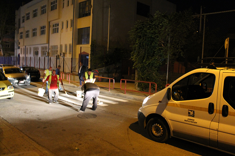 Οι εργασίες στο Περιστέρι δεν σταματούν ούτε τις βραδινές ώρες.