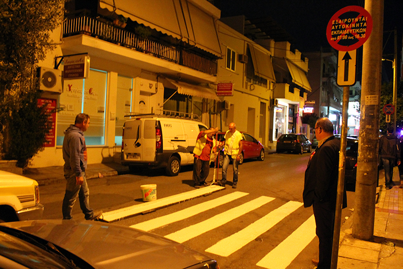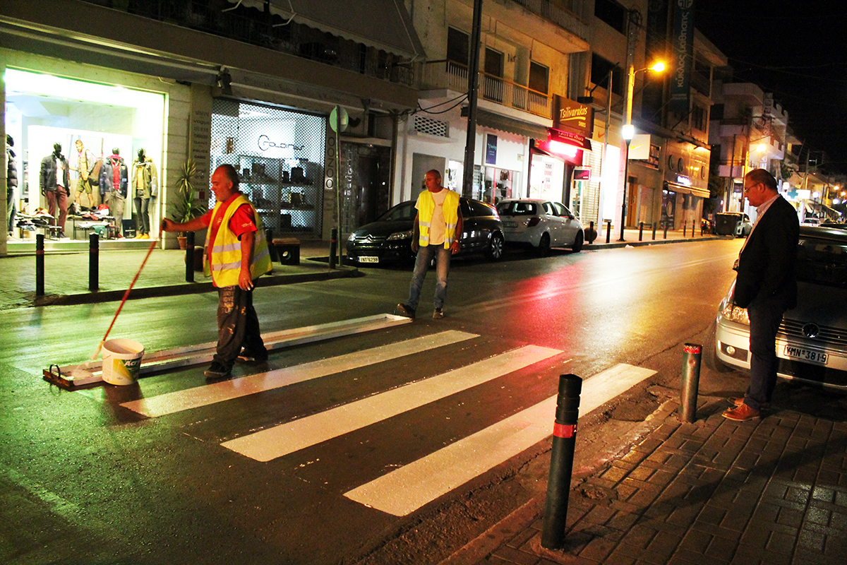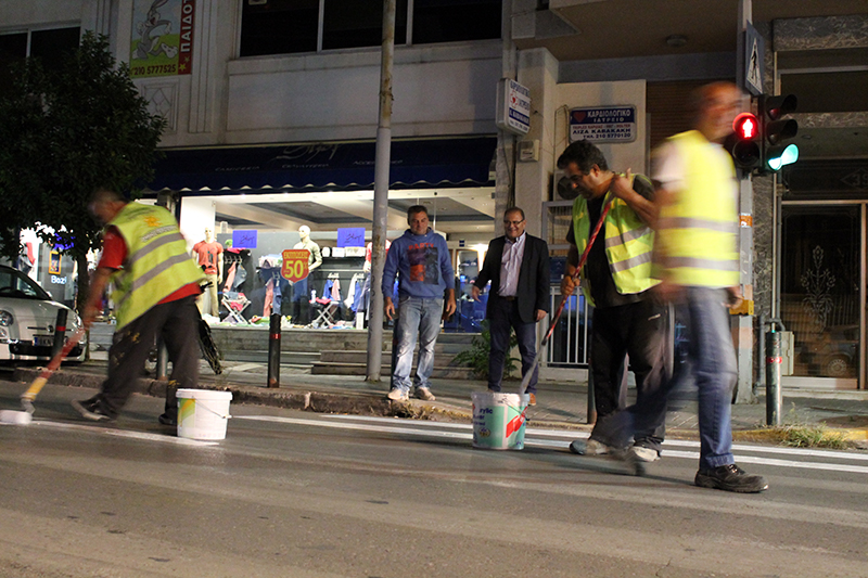 Συγκεκριμένα επί των οδών Καζαντζάκη, Μεσολογγίου και Σαρανταπόρου πραγματοποιήθηκαν επιδιορθώσεις των διαγραμμίσεων στο δρόμο για της εξασφάλιση της ασφάλειας μικρών και μεγάλων.