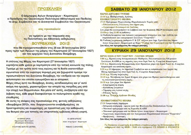Οι εκδηλώσεις ΒΟΥΡΒΑΧΕΙΑ 2012 στο Δήμο Αγίων Αναργύρων – Καματερού