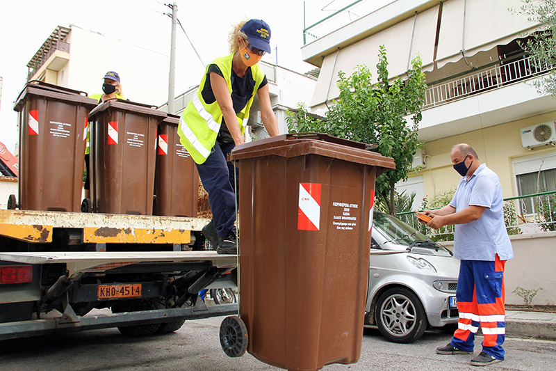 Για να φτάσουν τα οργανικά απορρίμματα στον καφέ κάδο που βρίσκεται στο δρόμο ο Δήμος έχει προσφέρει ειδικά καφέ καδάκια και βιοαποδομήσιμες σακούλες εντελώς δωρεάν.
