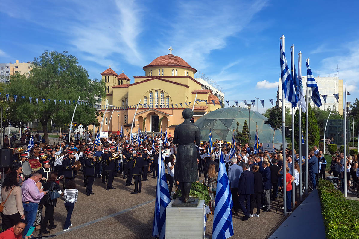 Οι σημαιοφόροι και οι παραστάτες μαθητές των σχολείων καθώς και οι εκπρόσωποι φορέων και συλλόγων της πόλης του Περιστερίου απέδωσαν με εθνική υπερηφάνεια φόρο τιμής στο Ηρώο, στην κεντρική πλατεία της πόλης.
