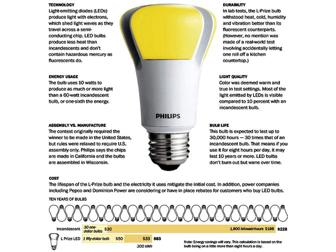 Αναφερόμαστε στον επαναστατικό λαμπτήρα LED της Philips ο οποίος θα έχει κατανάλωση μόνο 10w και διάρκεια ζωής 20 έτη! Αν και είναι σχετικά ακριβός (50 δολάρια), η εταιρεία κάνει ότι μπορεί για να μειώσει το κόστος του.