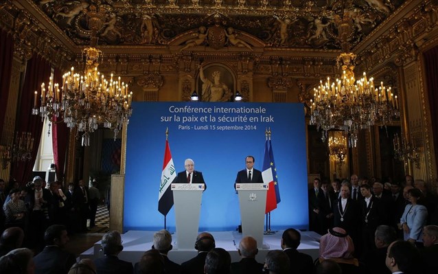 Η διάσκεψη για την «ειρήνη και την ασφάλεια στο Ιράκ» πραγματοποιείται στο Παρίσι με πρωτοβουλία του Ολάντ και με τη συμμετοχή 20 περίπου χωρών, εκ των οποίων οι 10 περίπου αραβικές.