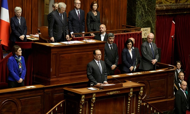 Η Γαλλία είναι σε πόλεμο επανέλαβε ο πρόεδρος της χώρας Φρανσουά Ολάντ, σε μια ιστορική συνεδρίαση της Γερουσίας και της εθνοσυνέλευσης, ανακοινώνοντας ότι οι γαλλικές επιχειρήσεις στη Συρία θα ενταθούν και διαμηνύοντας ότι «θα καταστρέψουμε το Ισλαμικό Κράτος».