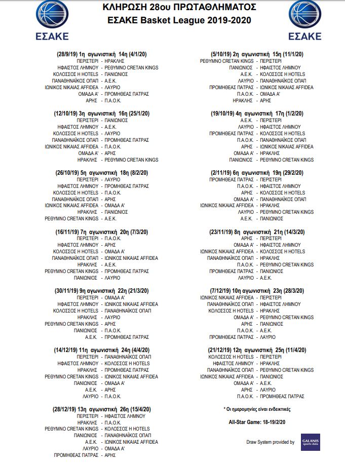 Όλο το πρόγραμμα του πρωταθλήματος της Basket League