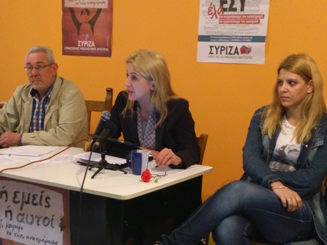 Η κ.Δούρου αφού έκανε μια εισαγωγική ομιλία για τις θέσεις της σχετικά με το θέμα, δέχτηκε τις ερωτήσεις των παρευρισκόμενων και σύλλεξε προτάσεις για την επιτροπή του ΣΥΡΙΖΑ.