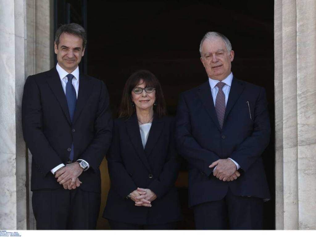 Μετά την ορκωμοσία της, η κ. Σακελλαροπούλου κατευθύνθηκε στα κοινοβουλευτικά έδρανα, όπου χαιρέτησε τους πολιτικούς αρχηγούς.