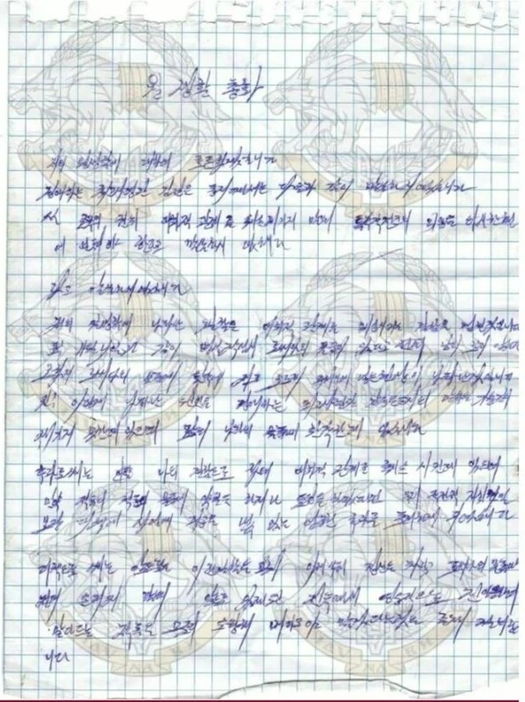 «Ακόμη και με τίμημα της ζωής μου, θα εκτελέσω τις εντολές του Ανώτατου Διοικητή χωρίς δισταγμό», γράφει μια καταχώρηση από το ημερολόγιο. «Θα δείξω στον κόσμο τη γενναιότητα και τη θυσία των ειδικών δυνάμεων του Κιμ Γιονγκ Ουν».