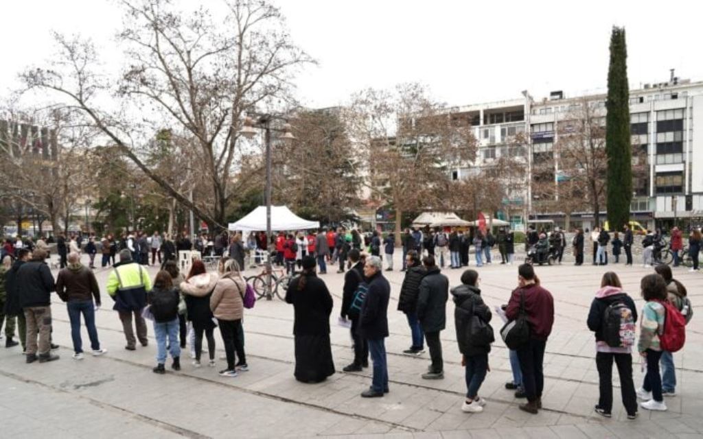 Συγκινητική είναι η ανταπόκριση των πολιτών στην αιμοδοσία που διοργανώνεται από το πρωί στην κεντρική πλατεία της Λάρισας για τις ανάγκες των τραυματιών της φονικής σύγκρουσης των δύο τρένων, το βράδυ της Τρίτης, στην κοιλάδα των Τεμπών.