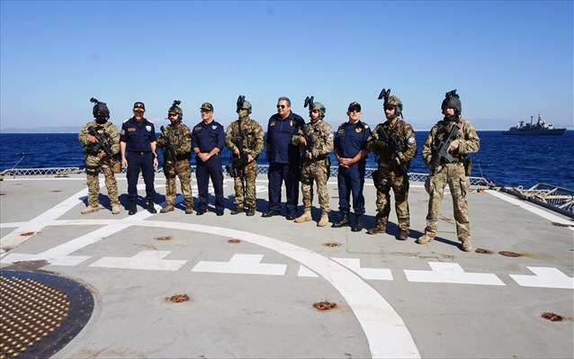 Αναλαμβάνουμε, λοιπόν, την ευθύνη μιας περιοχής, ιδιαίτερα αυτής που είναι μεταξύ της Κρήτης, του Σουέζ, της Κύπρου και της Μάλτας, όπου γίνεται η μεγαλύτερη διακίνηση παράνομων όπλων, πετρελαίου, ναρκωτικών, που χρηματοδοτεί την τρομοκρατία. Άρα αναλαμβάνουμε έναν τομέα ευθύνης που θα πρέπει να μας βάλει μπροστά, ως μια χώρα ενήμερη στην αντιμετώπιση της τρομοκρατικής απειλής. Η δική σας εκπαίδευση, τους τελευταίους μήνες, σε θάλασσα και στεριά, θα οδηγήσει τις επόμενες εκπαιδεύσεις.