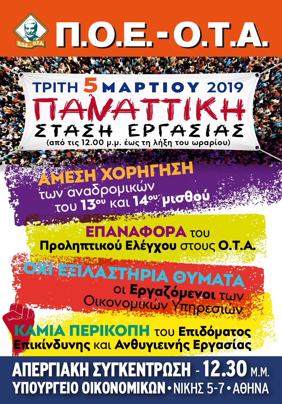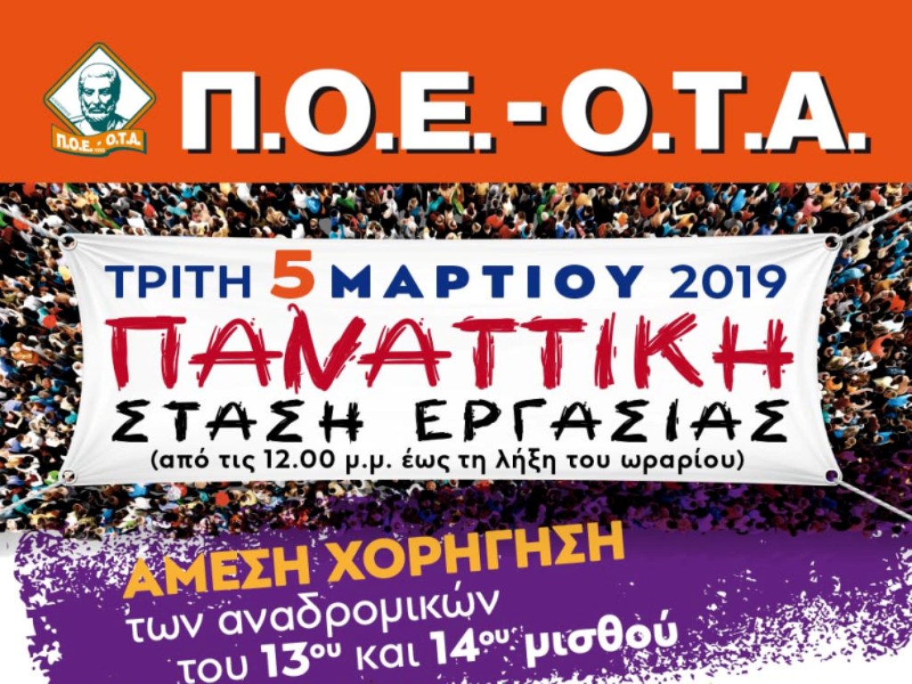 Στάση εργασίας αύριο, Τρίτη 5 Μαρτίου, στο δημόσιο τομέα, καθώς η ΑΔΕΔΥ κήρυξε Παναττική στάση εργασίας.
