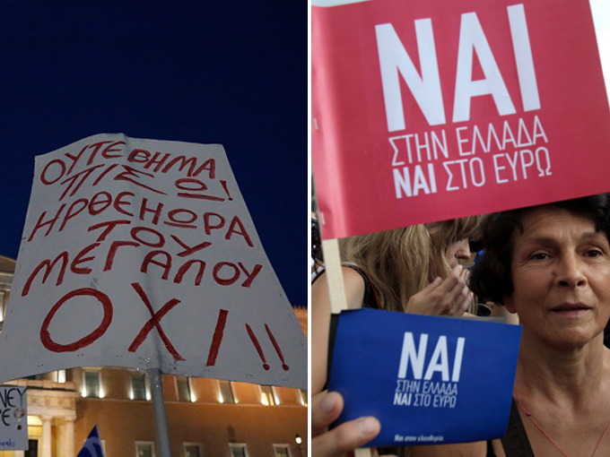 Με δύο παράλληλες συγκεντρώσεις των υποστηρικτών του «ναι» και του «όχι» κορυφώνονται σήμερα το βράδυ στην Αθήνα οι κινητοποιήσεις εν όψει του δημοψηφίσματος της Κυριακής.