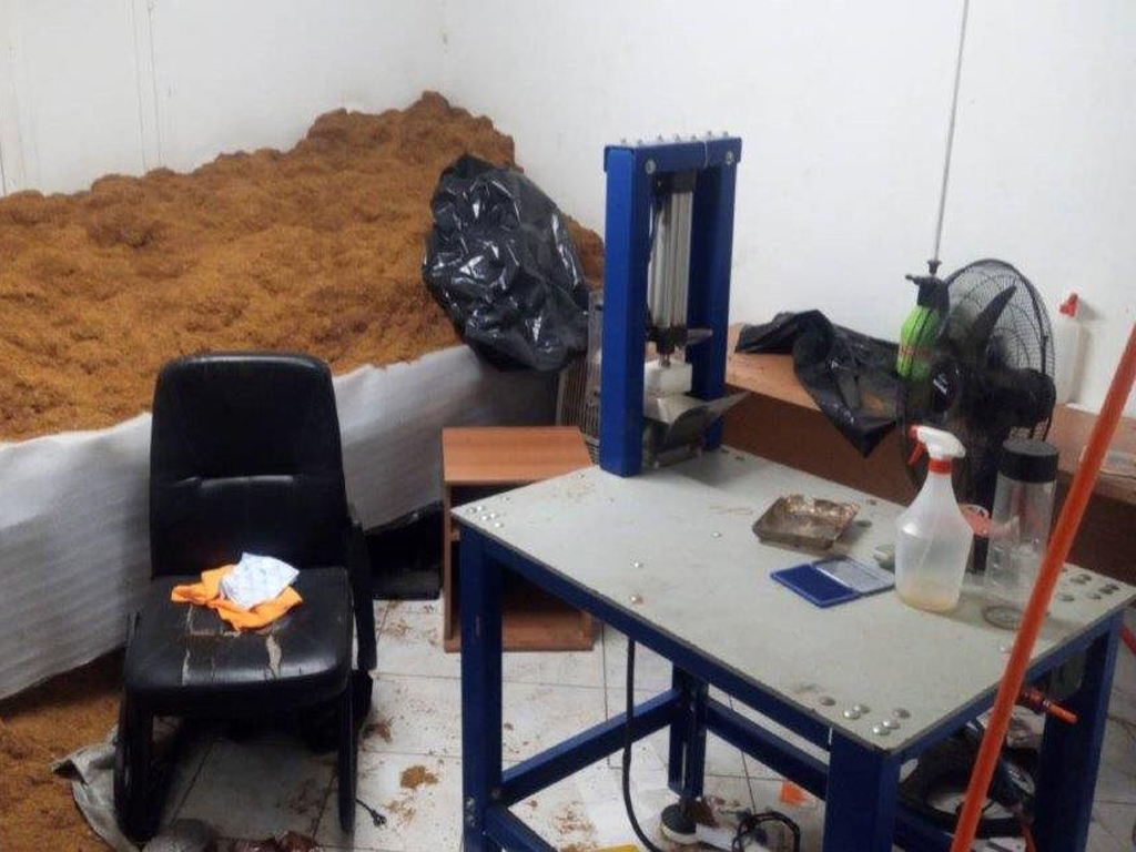 Στον χώρο αυτόν και στο εσωτερικό του οχήματος, βρέθηκαν και κατασχέθηκαν 630 κιλά χύμα λαθραίου καπνού, 476 συσκευασίες καπνού, 632 πακέτα τσιγάρα, πλήθος κενών συσκευασιών καπνού, εξοπλισμός τυποποίησης καπνού, τρεις ζυγαριές ακριβείας, πιστόλι και δύο αυτοκίνητα.