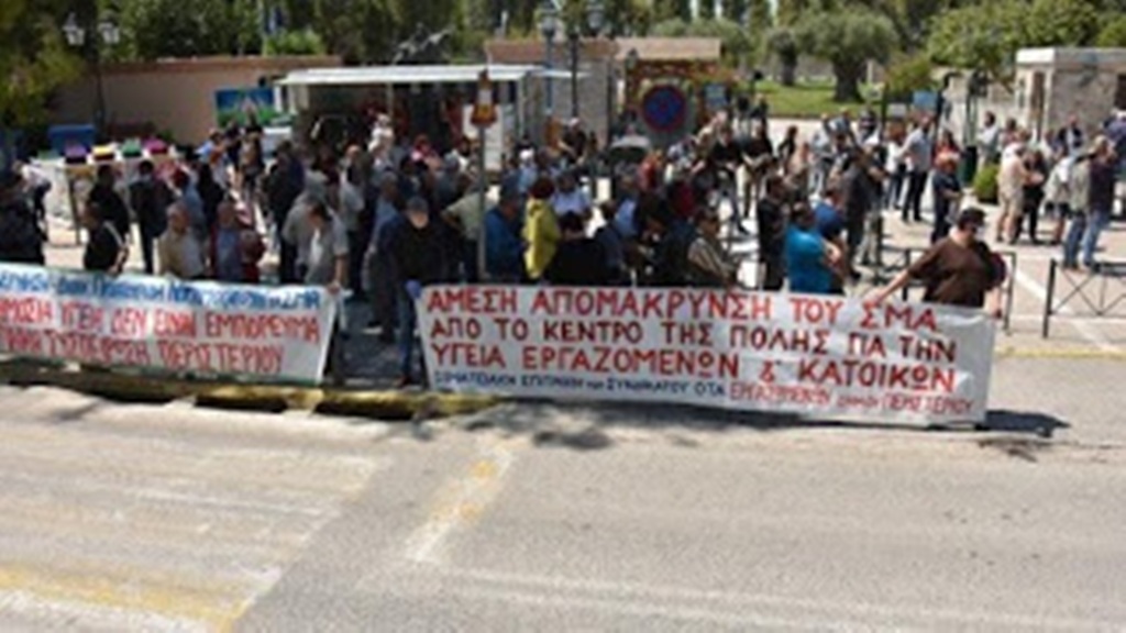 Στην κινητοποίηση συμμετείχε η «Λαϊκή Συσπείρωση» Περιστερίου με επικεφαλής τον δημοτικό σύμβουλό της Γιώργο Σιδέρη.