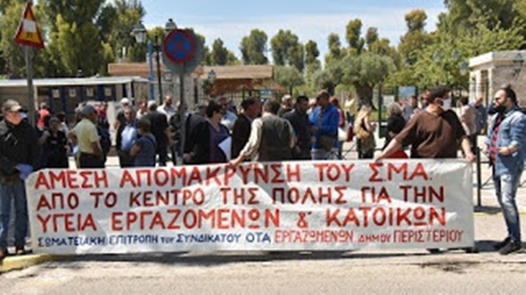 Παράσταση διαμαρτυρίας πραγματοποίησε το πρωί του Σαββάτου η Σωματειακή Επιτροπή Εργαζομένων στο Δήμο Περιστερίου του Συνδικάτου ΟΤΑ Αττικής, απέναντι από το αμαξοστάσιο του Δήμου, μπροστά στο άλσος. Απαιτόντας την απομάκρυνση του Σταθμού Μεταφόρτωσης Απορριμάτων και τη μετατροπή του σε χώρο πράσινου και άθλησης.