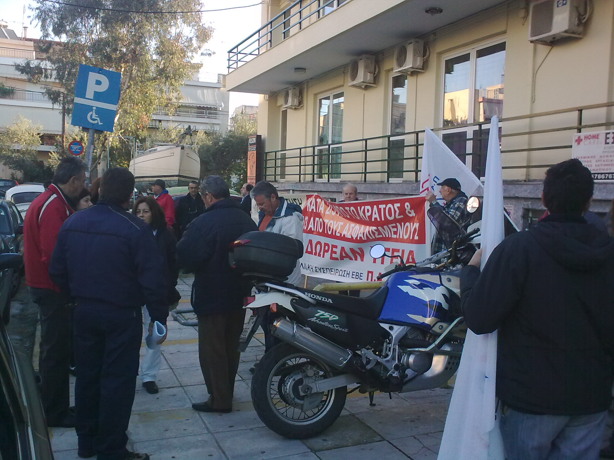 Η τοπική επιτροπή της Πανελλαδική Αντιμονοπωλιακή Συσπείρωση Επαγγελματιών – Βιοτεχνών – Εμπόρων (ΠΑΣΕΒΕ) στην πόλη του Περιστερίου πραγματοποίησε στις 19 Ιανουαρίου 2011, παράσταση διαμαρτυρίας στα γραφεία του ΟΑΕΕ στο Περιστέρι.