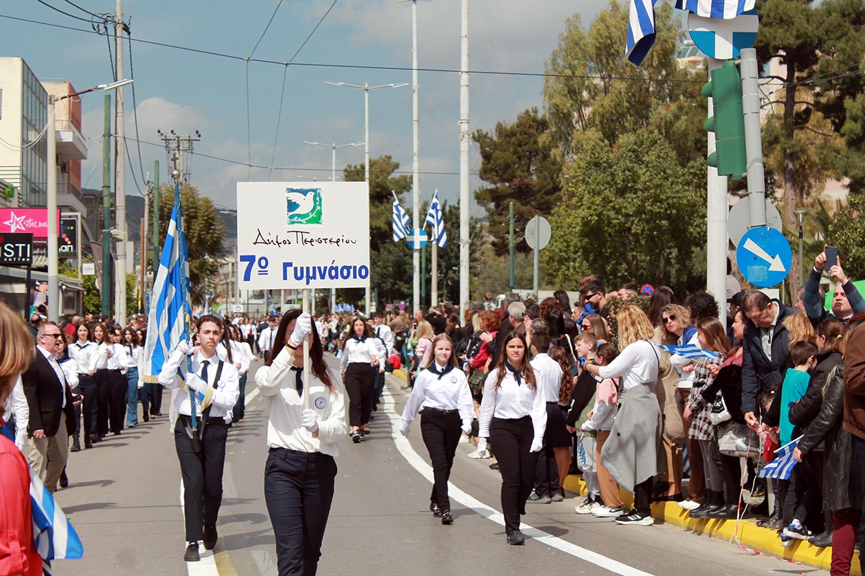 Θαυμασμός και συγκίνηση για την παρέλαση της 25ης Μαρτίου 2024 στο Περιστέρι που πραγματοποιήθηκε επί της Λεωφόρου Παναγή Τσαλδάρη.