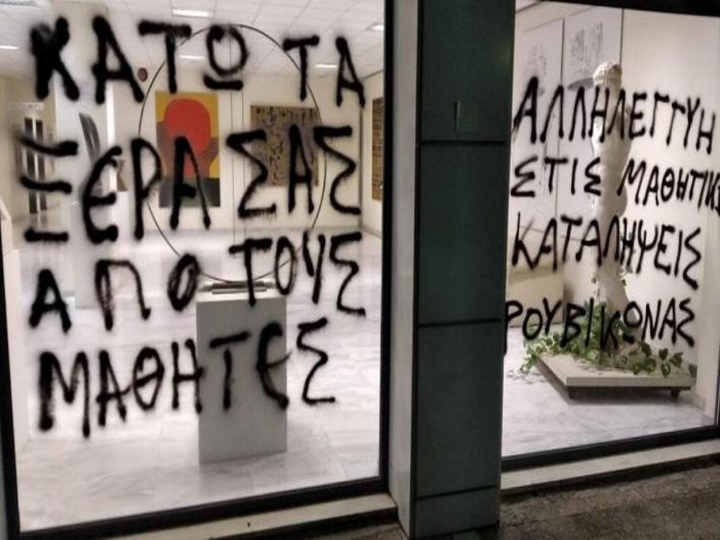 Από την πλευρά του, το υπουργείο Παιδείας, σε ανακοίνωσή του, έκανε λόγο «για άλλη μία θρασύδειλη, καταδικαστέα πράξη κατ’ επίφαση πολιτικού ακτιβισμού που πλήττει τον δημοκρατικό διάλογο και τη δημόσια περιουσία».